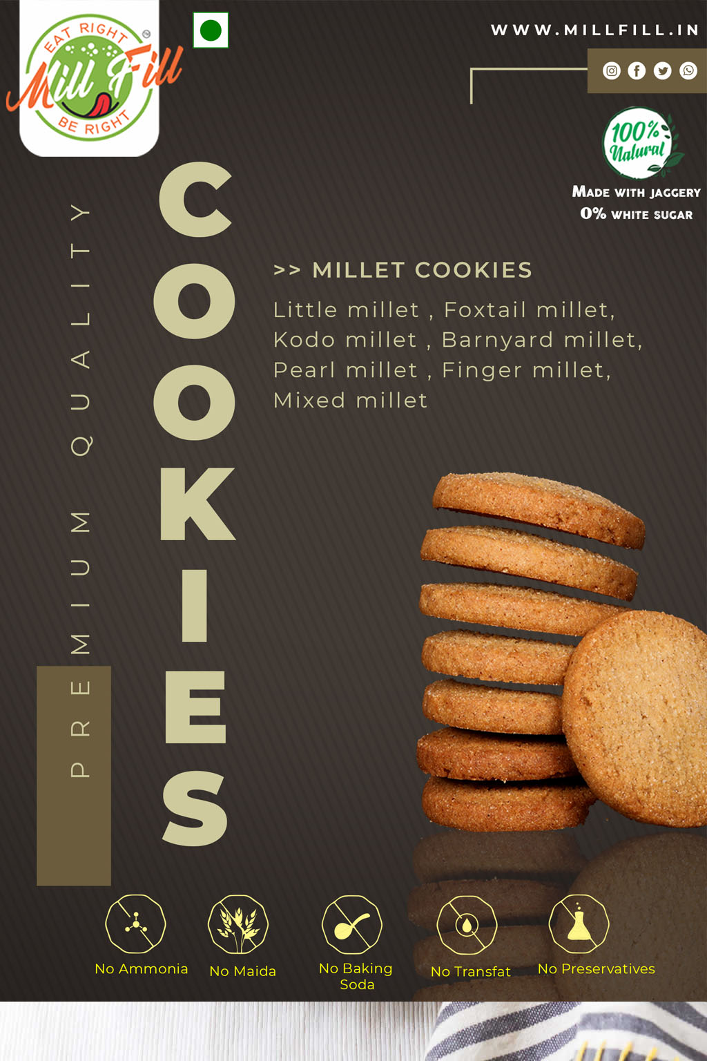 Instant Energy Booster Cookies Loaded With 9 Millets (Little millet , Kodo Millet , Pearl millet Banyard Millet , Foxtail Millet , Finger Millet Proso Millet , Sorghum Millet & Brown Top Millet) Made With Organic Jaggery FREE FROM GLUTEN, WHEAT, WHITE SUGAR, BAKING POWDER, AMMONIA ARTIFICIAL COLOR AND PRESERVATIVES